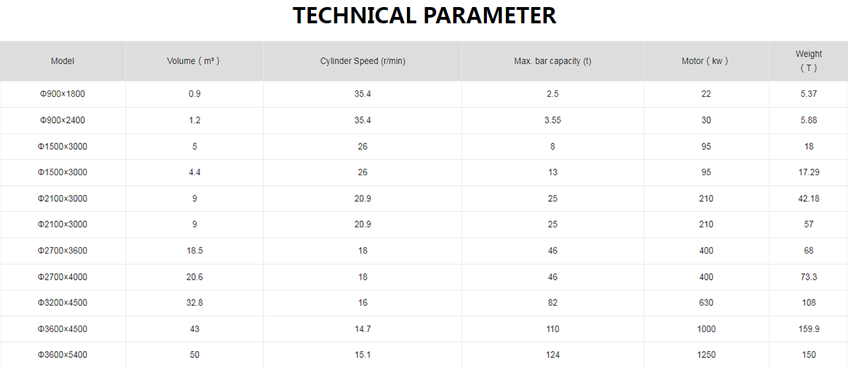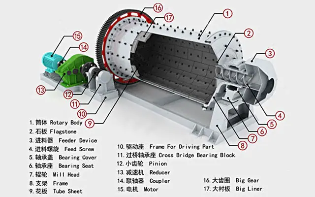 The rod mill is an asynchronous motor connected with a small gear through a reducer, which directly drives the surrounding large gears to decelerate and rotate, and drives the rotary part to rotate. The cylinder is equipped with an appropriate grinding medium—steel rods. Under the action of the machine, the material to be ground continuously enters the inside of the cylinder from the feeding part, is crushed by the moving grinding medium, and the product is discharged out of the machine through the force of overflow and continuous feeding, so as to proceed to the next process deal with.